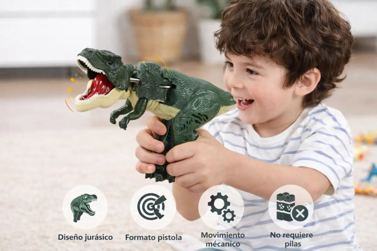Divertido juguete inspirado en la era jurásica, que combina el diseño de un dinosaurio tipo T-Rex con la acción de una pistola interactiva. Al presionar el gatillo, el dinosaurio cobra vida con movimiento mecánico, simulando un ataque realista que estimula la imaginación y el juego creativo de los niños.